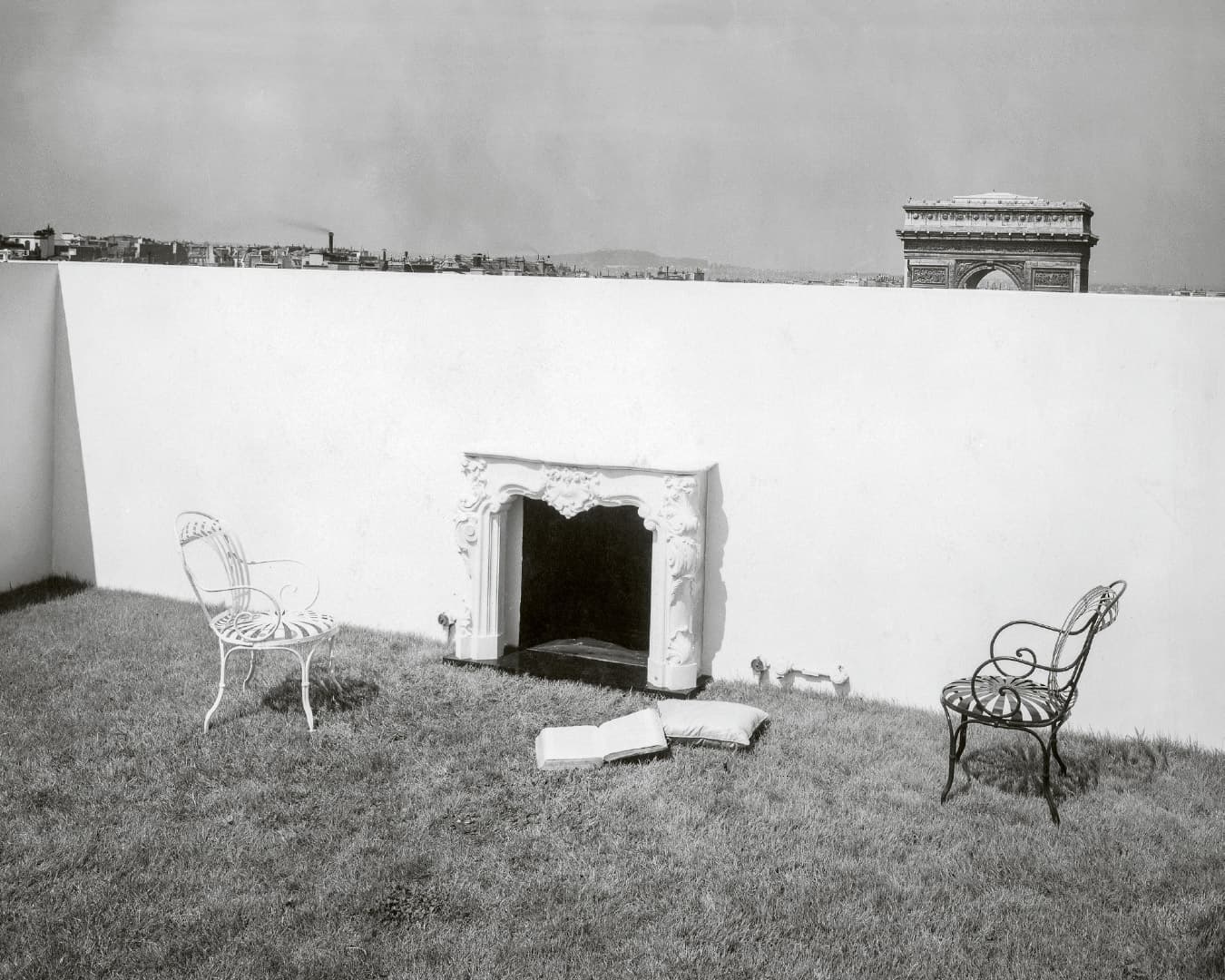 In Carlos de Beistegui’s penthouse, Le Corbusier builds an unusual stage: a white wall, a historicist fireplace, a grass floor, and in the distance, the Arc de Triomphe emerging as an urban backdrop. A minimal space made of contrasts — essential in form, complex in symbol. Not luxury, but irony. Not opulence, but play. To provoke wonder with the essential through a light, radical gesture: deeply lo-fi.