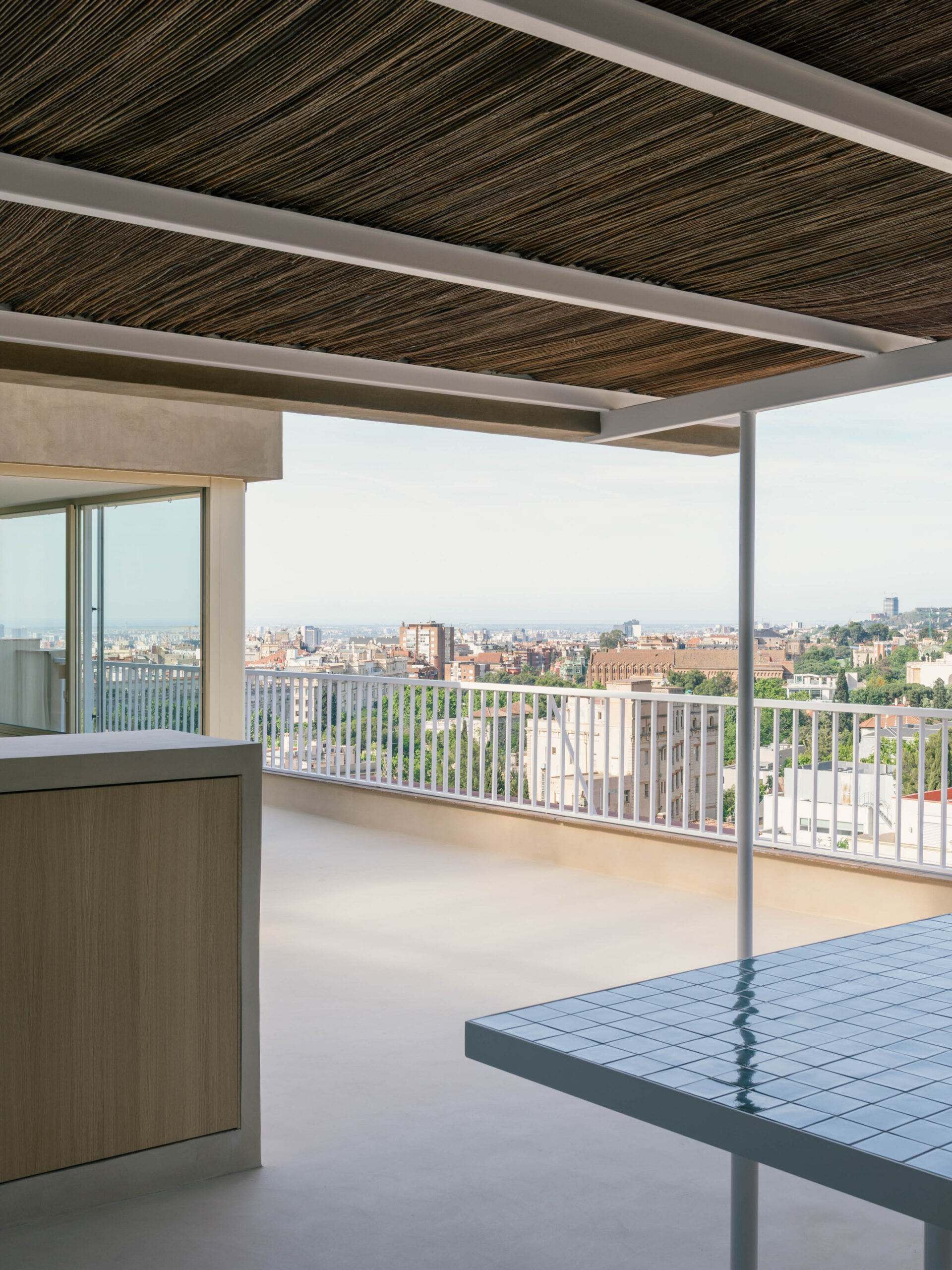 Located on the top floor of a building at the point where the city begins its ascent towards Avinguda Tibidabo, the home enjoys a privileged position with an uncommon view of Barcelona, stretching from Mount Collserola across the city and towards the sea.