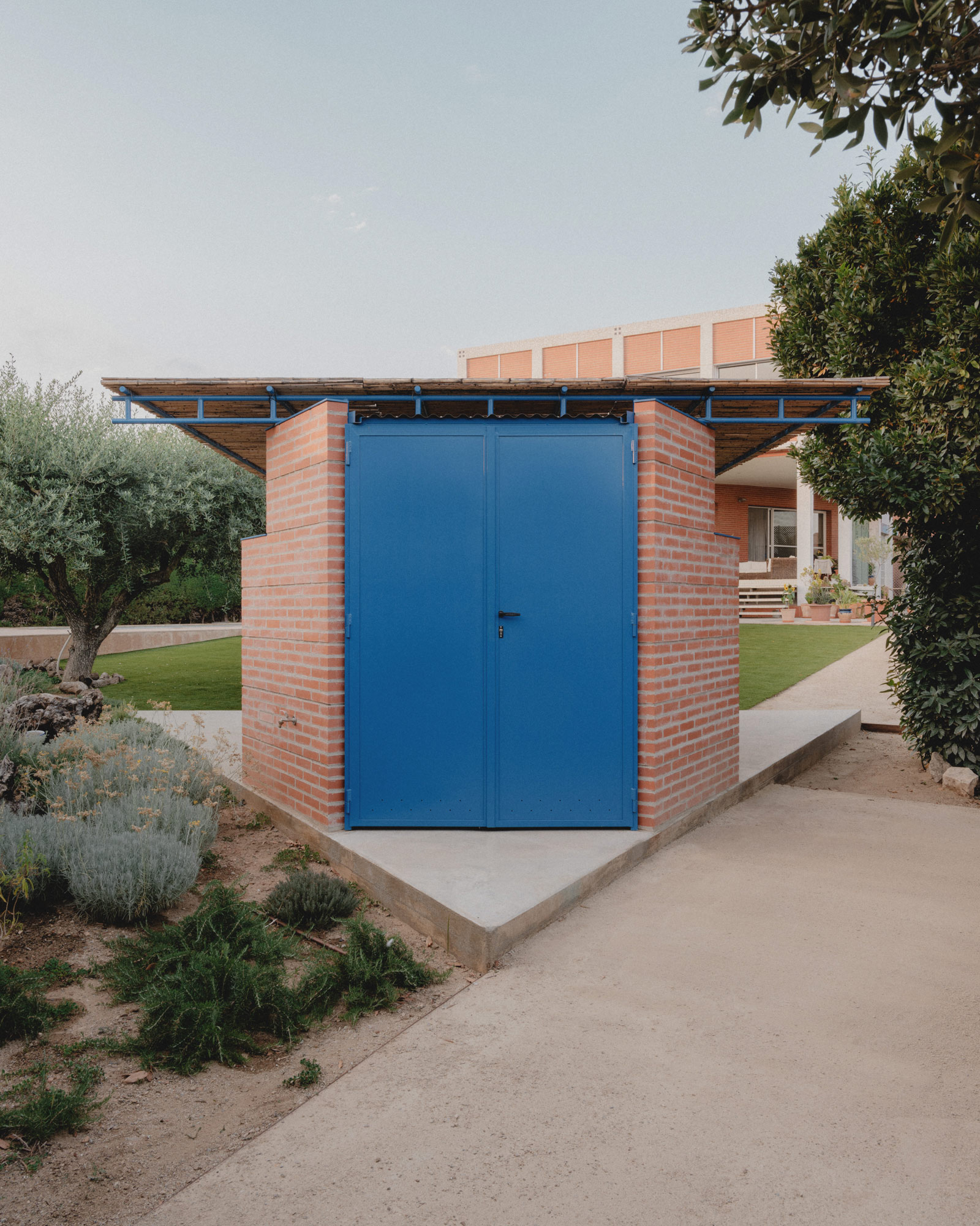 The BBQ, a triangular concrete plinth, follows the plot’s geometry and faces north toward the house Josep designed. The bricks, recovered from the original construction, were stored for 30 years. Behind the outdoor kitchen, the pool equipment is hidden from view. Inspired by local agricultural ‘basses,’ the pool is clad in soft, local ‘Cènia’ stone, the same material used in Oriol & Alba’s house. This subtle nod to the region’s heritage grounds the space in its Mediterranean roots.