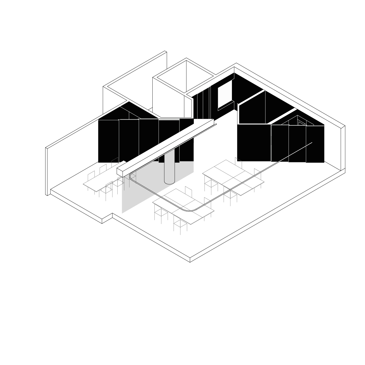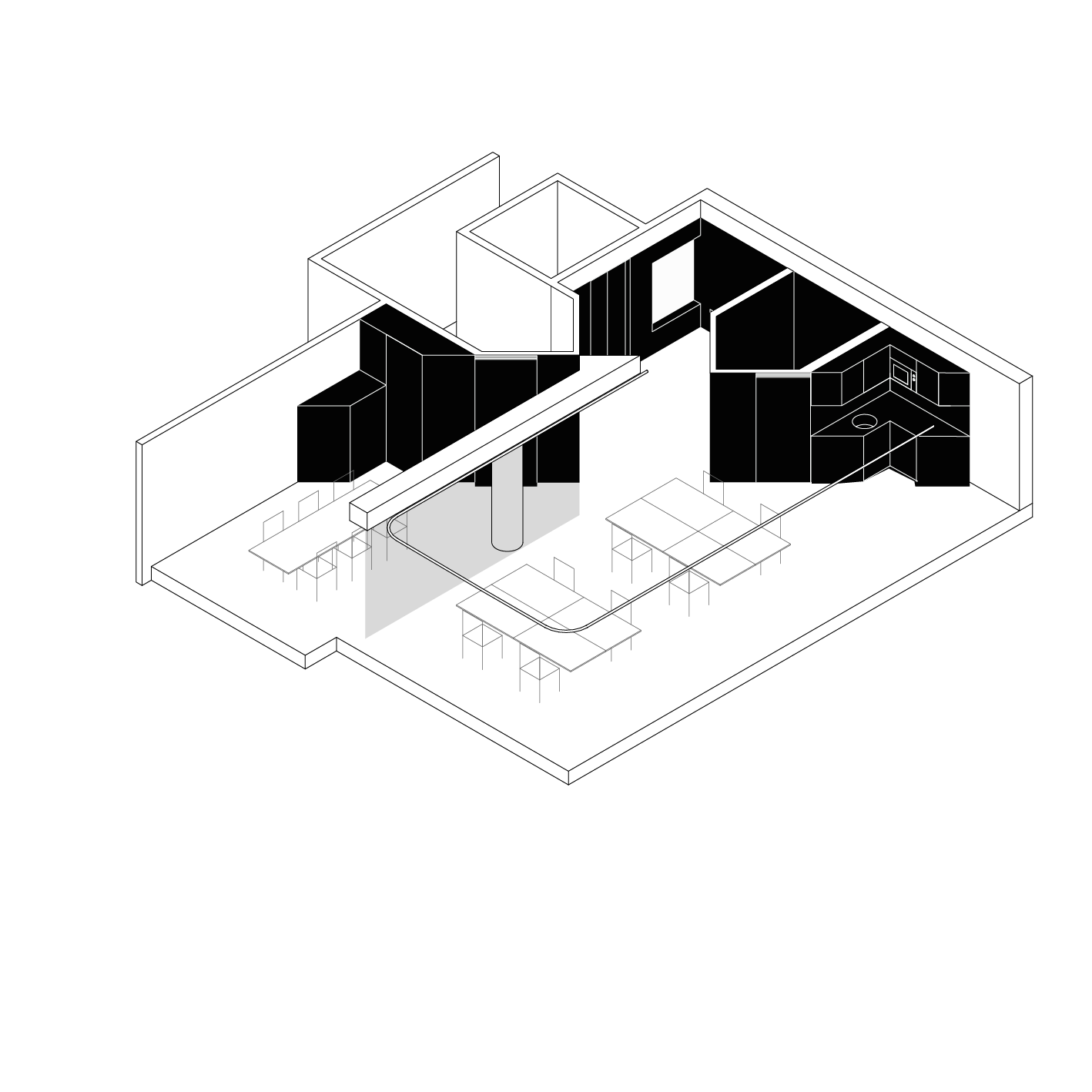 A key challenge was re-thinking the outdated staircase and elevator, which no longer met current regulations. By repositioning and reshaping their corners, we reclaimed valuable interior space and created a diagonal axis that improved both compliance and flexibility—preparing the building for its new function as office space.