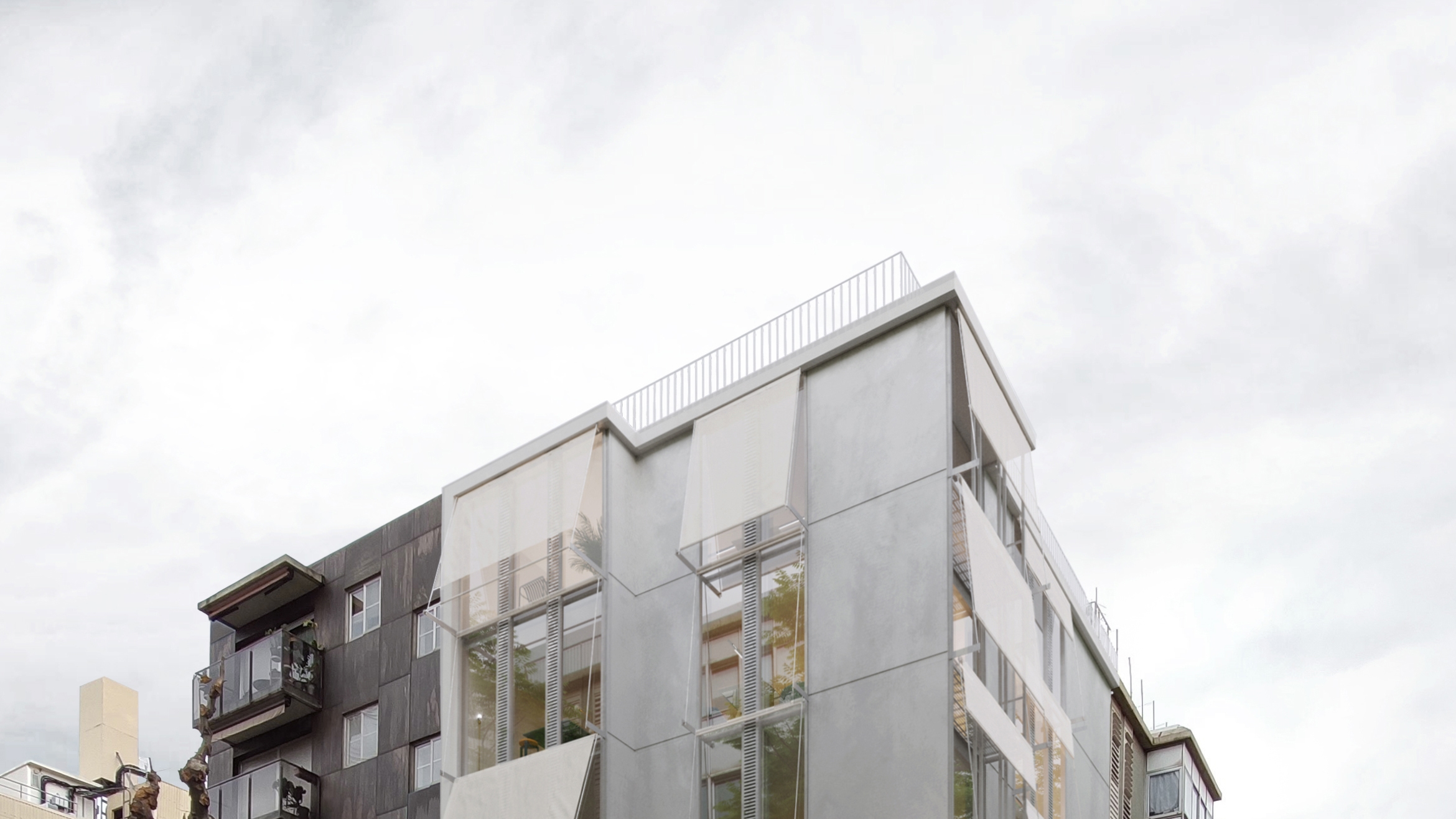 Our proposal preserved the building’s structural integrity and architectural language, in continuity with its urban context, while upgrading with a technical façade that allowed for natural ventilation, large fixed openings, and automatic fabric awnings to reduce energy consumption.