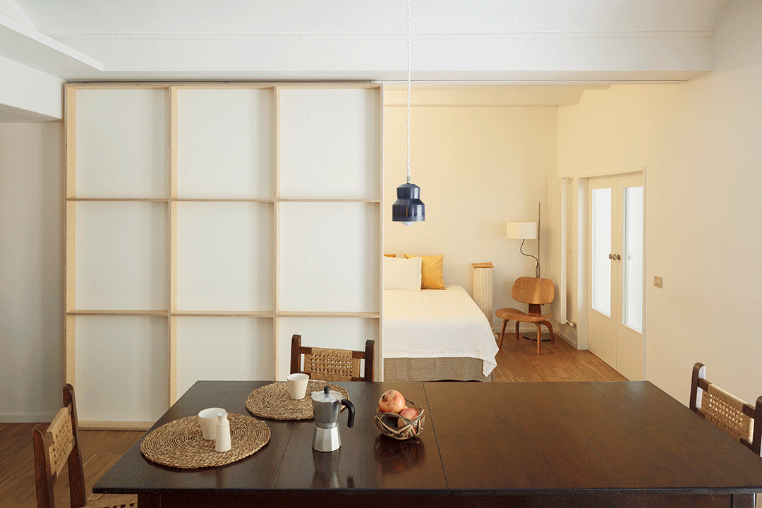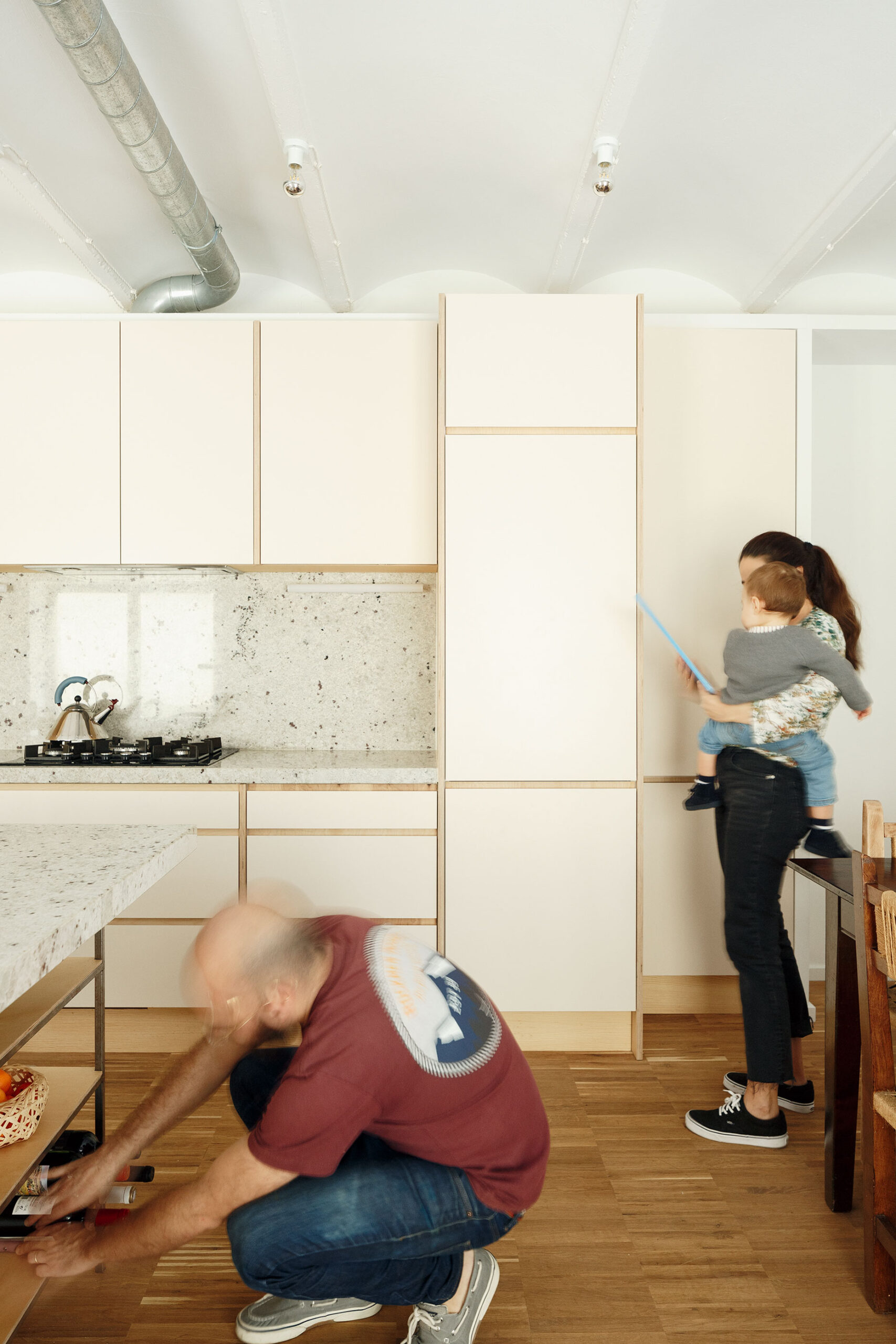 A 100 sqm abandoned storage space in a basement converted into a loft and studio. Marcel and Claudi’s loft was designed around two courtyards: a large one with lots of light and a smaller one that ensures good natural cross ventilation throughout the space.